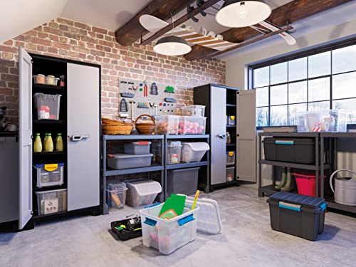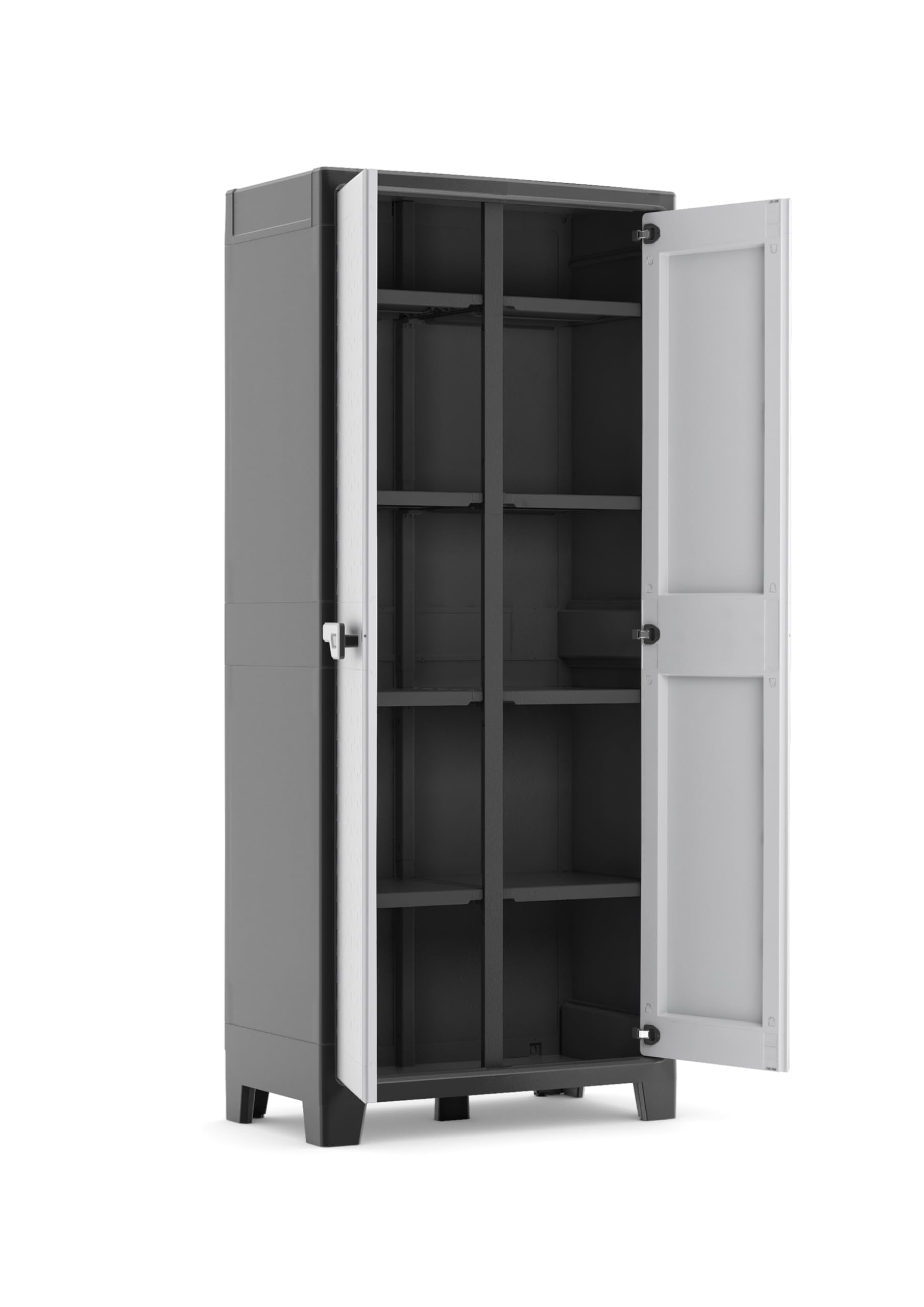Kunststoffschrank Besenschrank 80x44x182 cm – Wasserdichter Aufbewahrungsschrank mit Einlegeböden, Schwarz/Grau, für Innen & Außen